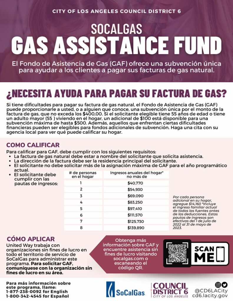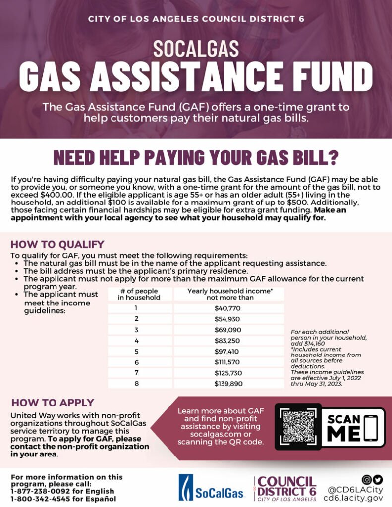 United Way works with non-profit organizations throughout SoCalGas service territory to manage this program. To apply for GAF, please contact the non-profit organization in your area. Learn more about GAF and find non-profit assistance by visiting socalgas.com