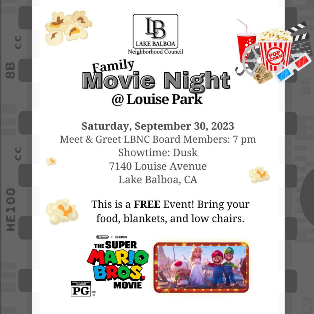 Councilmember Imelda Padilla, Council District 6, and Lake Balboa Neighborhood Council are hosting Movie Night At the Park. This event is a great opportunity to meet new neighbors, Councilmember Imelda Padilla, and your Lake Balboa Neighborhood Council Members.