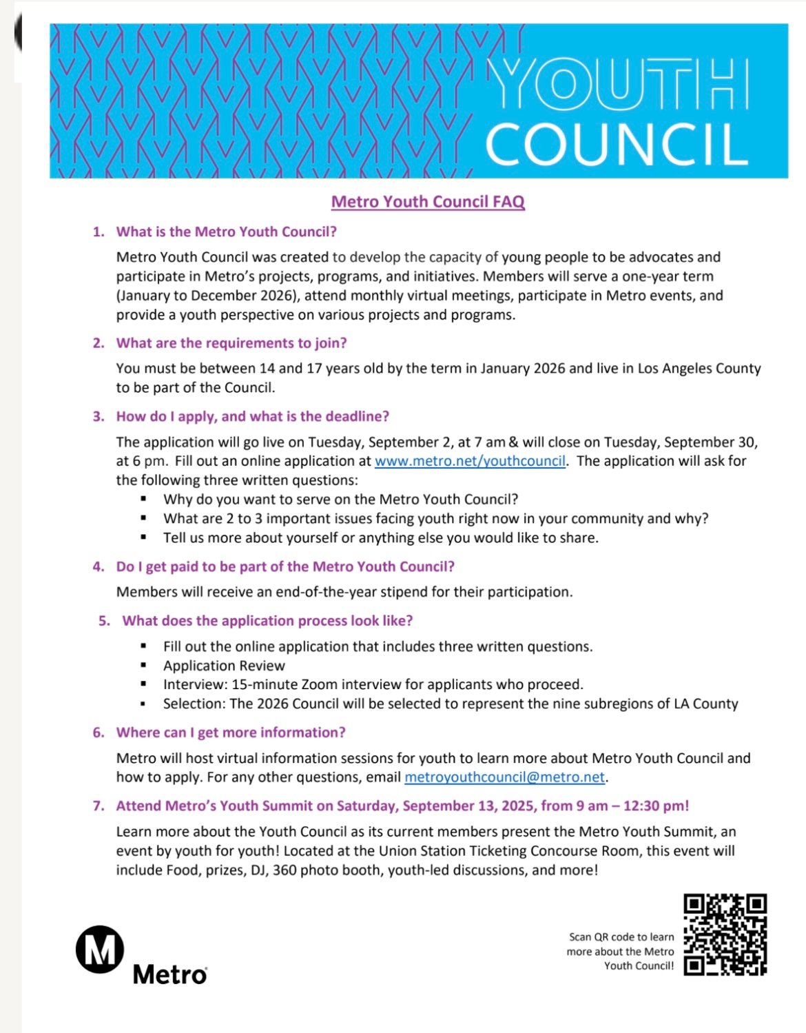 Apply for Youth Council: www.metro.net/youthcouncil (September 2–30)